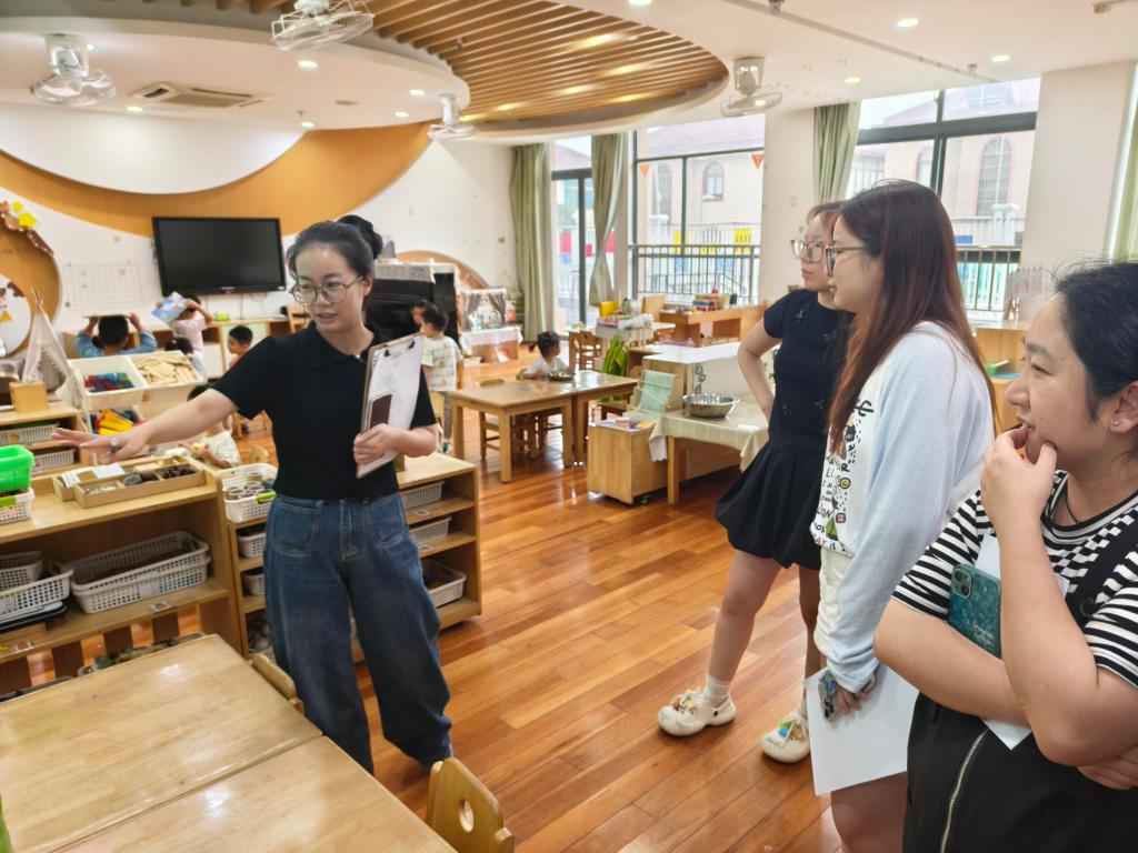 调研以班级为单位逐一走访,重点围绕 “整体环境规划”“墙面内容创设”“材料投放质量”三大维度展开细致考察,同步将各班亮点以照片形式分享至教师群,便于实时交流借鉴。每到一个班级,空班教师均全程参与,调研人员结合实际情况现场提出优化建议,实现发现问题即时沟通。随后,全体调研人员集中开展研讨反馈会,围绕上午调研中发现的亮点与待改进之处深入交流,共同梳理环境创设的核心方向,明确“儿童共创”“生活融合”的优化路径。